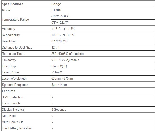 | Model | UT301A | UT301C |